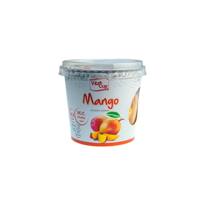 Mrazem sušené mango je 100% přírodní, bez přidaných konzervantů nebo sladidel. Tento zdravý a chutný snack obsahuje 30 gramů manga, které prošly procesem mražení a sušení, čímž si uchovávají svou výživnou hodnotu, barvu a chuť. Mrazem sušené mango lze přidávat do müsli, jogurtu, pečiva nebo konzumovat samostatně jako zdravou svačinu.